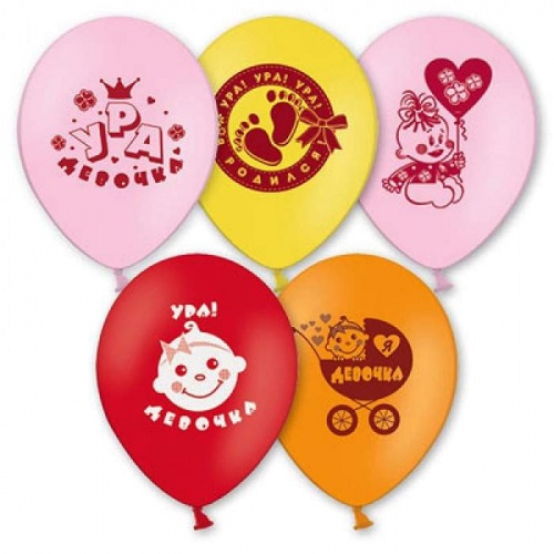 Набор шаров Веселая Затея Ура! Девочка! 30 см 5 шт