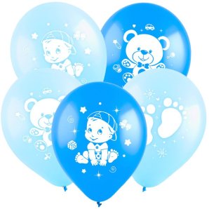 Шар BL 14" шелк ассорти С рождением Мальчик 25шт