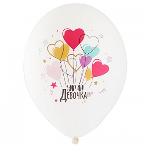 Шар Bl 14" белый Ура! Девочка! 5цв 25 шт