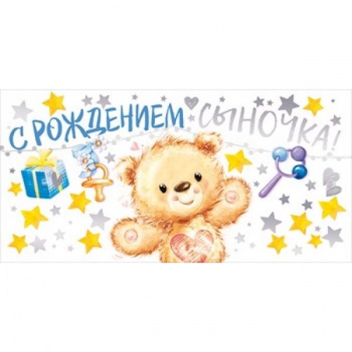 Конверт для денег С рождением сыночка! мишка