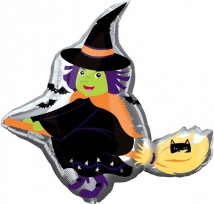 Шар фольга фигура Ведьма на метле серебро (FL)