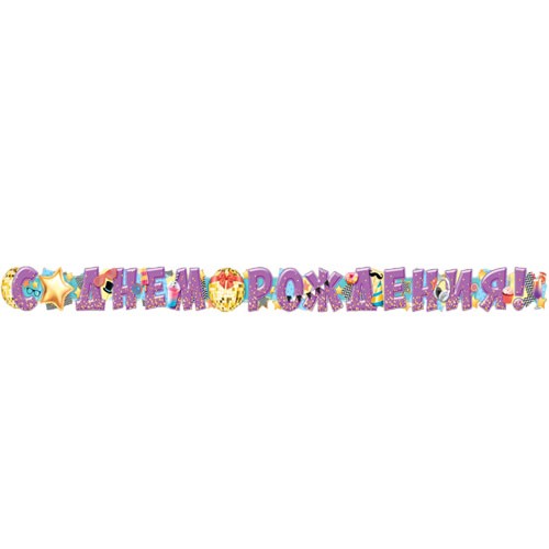 Гирлянда-буквы СДР! фиолетовый с дискоболом 2м