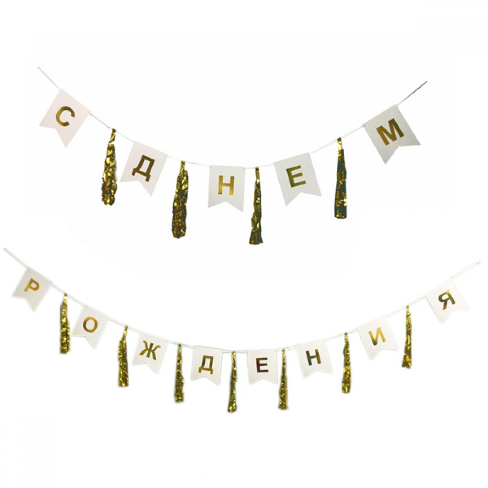Гирлянда-флажки/тассел С Днём Рождения! золото 2,9м