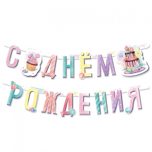 Гирлянда-буквы Сладкий День Рождения 1,65м