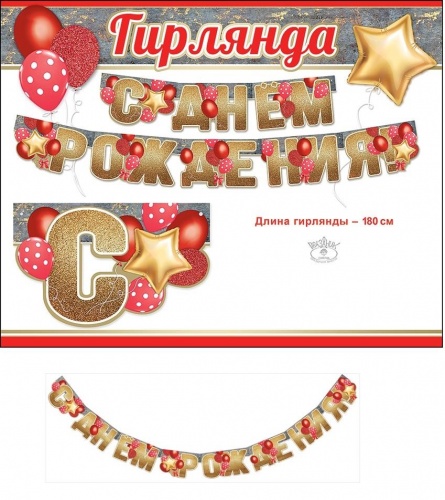 Гирлянда-Буквы СДР Торт Праздничный 220см/G