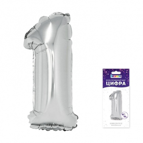 Шар Цифра 1 серебро 41 см (Уп)