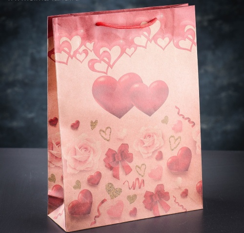 Пакет подар крафт Сердца 24*33*8см в ассортименте
