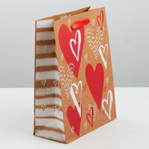 Пакет подар крафт Сердца 19*25*8см в ассортименте