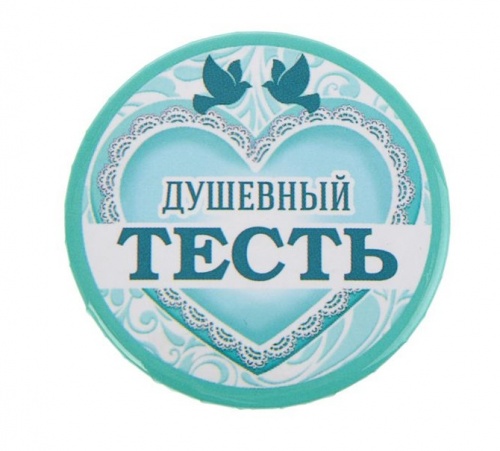 Значок закатной "Самый душевный тесть" 56 мм