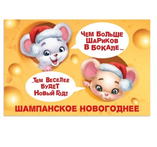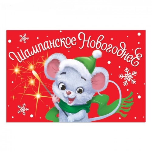 Наклейка на бутылку "Шампанское новогоднее" мышка 12*8см