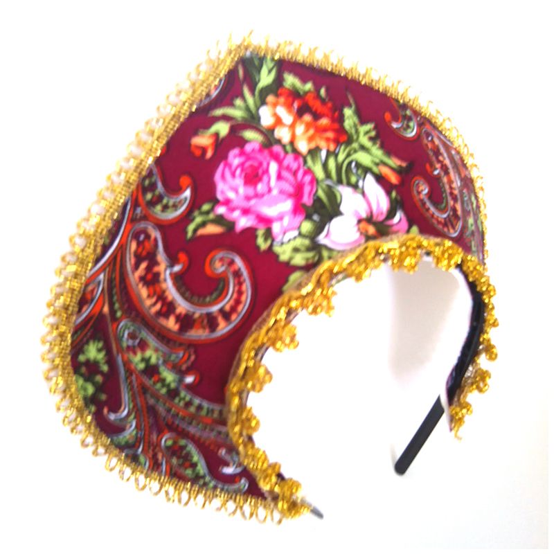 Кокошник "Расписной" бордовый