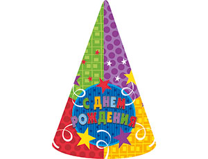 Колпак Веселая Затея С ДР Серпантин 6 шт