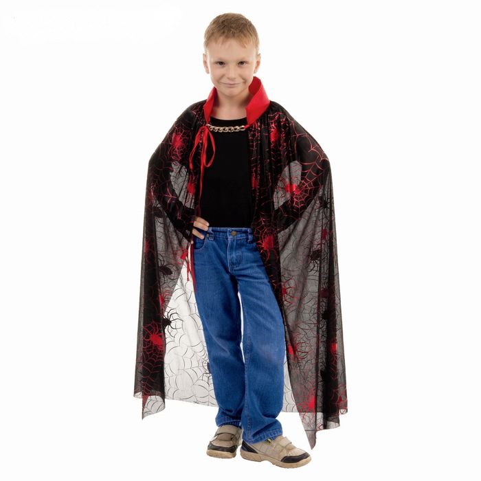 Плащ для Хеллоуина Паутина с красным пауком 100см