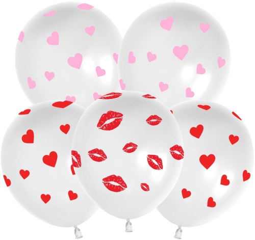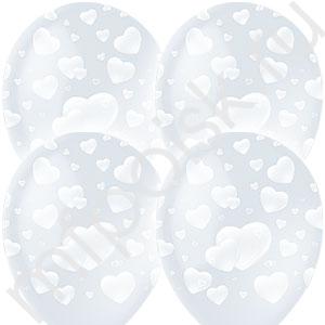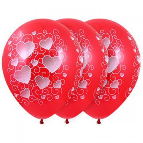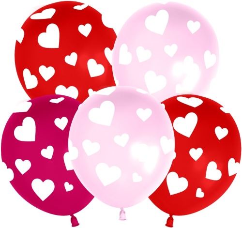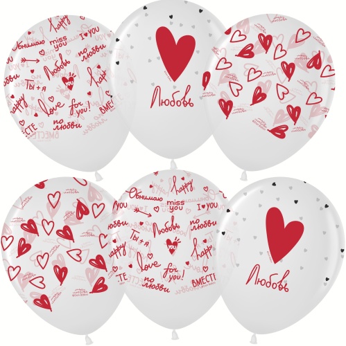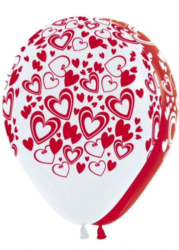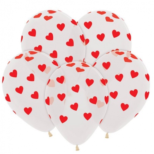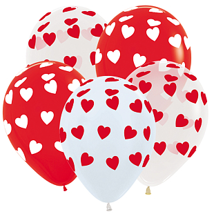 S 12" Пастель Кокетливые сердечки (белый,красный) 50 шт