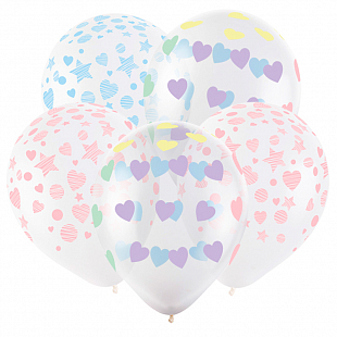 Шар Т 12" Ассорти Пастель Кристалл Нежные Сердечки 100 шт
