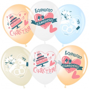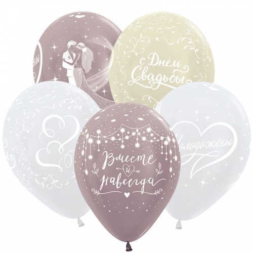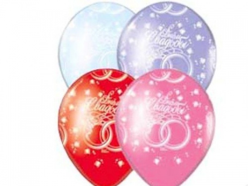 Шар шелкография пастель 12" С Днем Свадьбы Кольца 50 шт