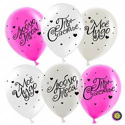 Шар ВВ 12" Пастель ассорти Люблю тебя,ты мое счастье! 100шт