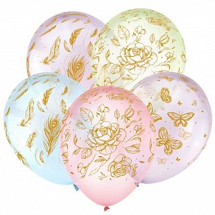 Шар М 12" Декоратор растр. 5 ст. рис. Транспорент Розы 25 шт