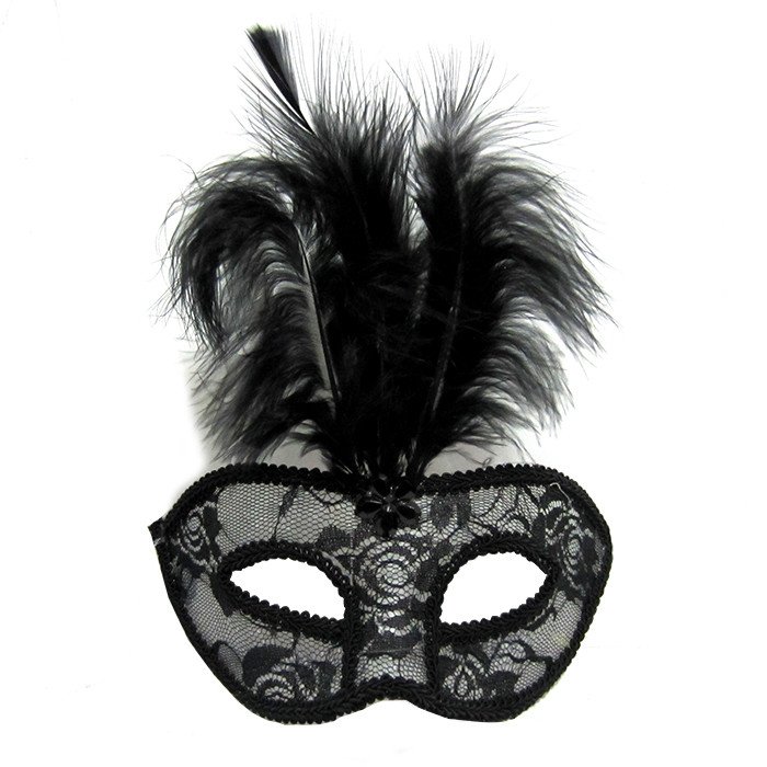 Маска венецианская "Кружево" Черная с перьями