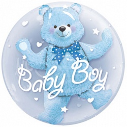 Шар Круг 24" Медвежонок мальчик прозрачный (FL)