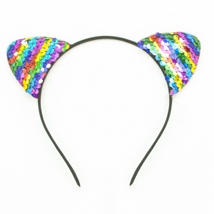Ободок Кошка блестки ушки разноцветные