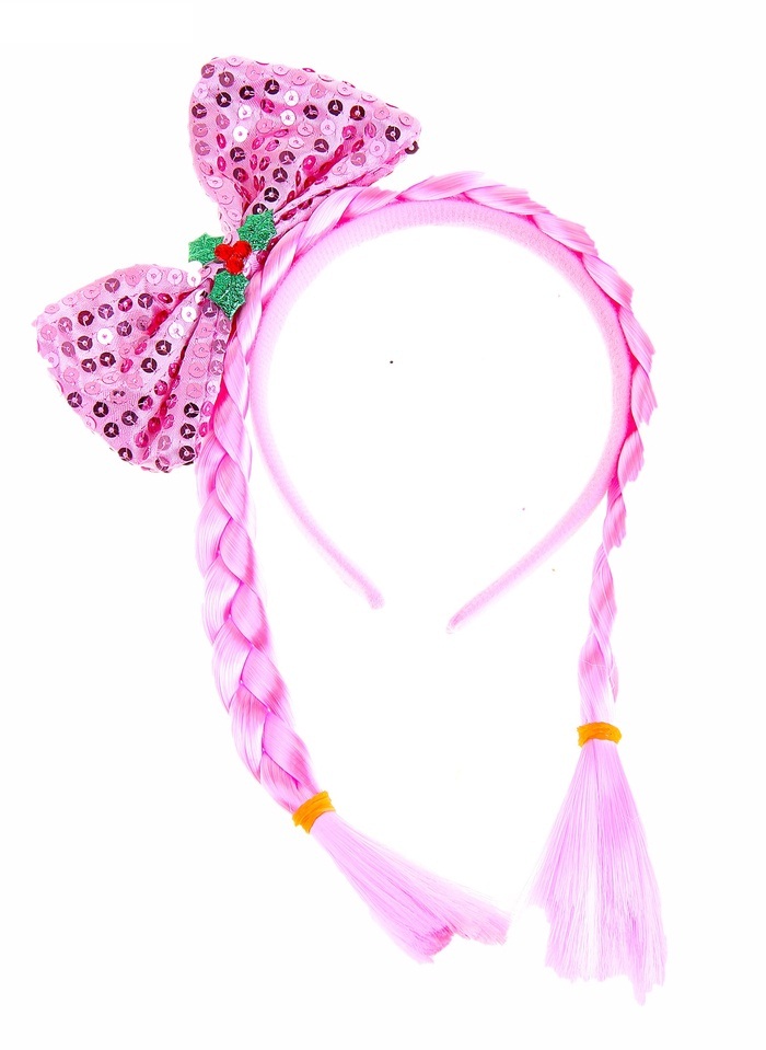 Ободок Бант блеск с косичками роз 1 шт