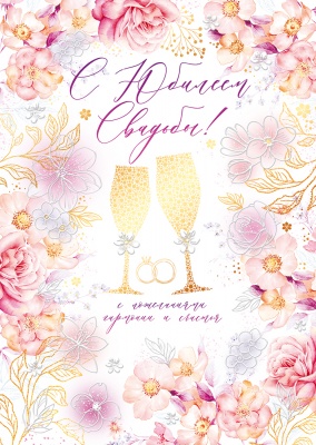 Открытка А4 С юбилеем свадьбы! бокал и блестки