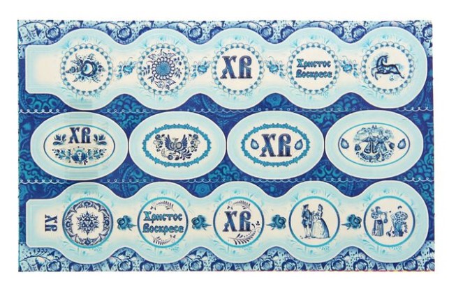 Пасхальные наклейки на яица "Гжель" Глиттер