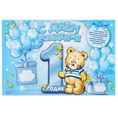 Плакат "С Днем Рождения",1 годик для мальчика (мишка), 60х40 см