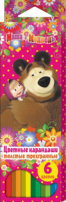 Карандаши Маша и Медведь 6 цветов толстые трехгранные 1 шт