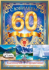 Открытка А4 С Юбилеем 60! Благополучия и процветания