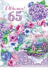 Открытка А4 С Юбилеем 65! Сирень и домик