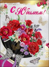 Открытка А4 С Юбилеем! полосатый бант и букет
