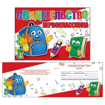 Свидетельство Первокласника двойное Рюкзак и карандаш