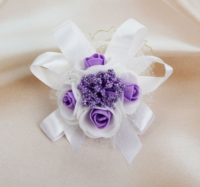 Бутоньерка на руку Цветы бело-фиолетовая 1692509