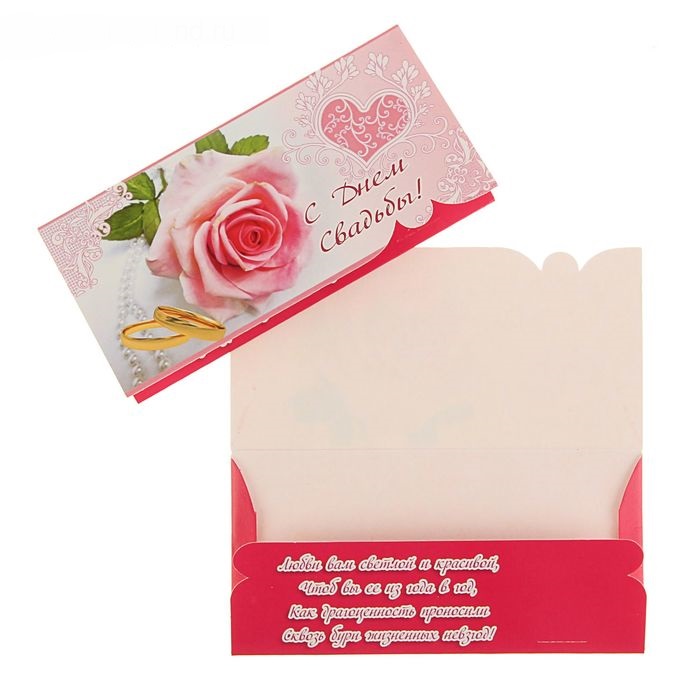 Конверт для денег С Днём свадьбы объем. сердца