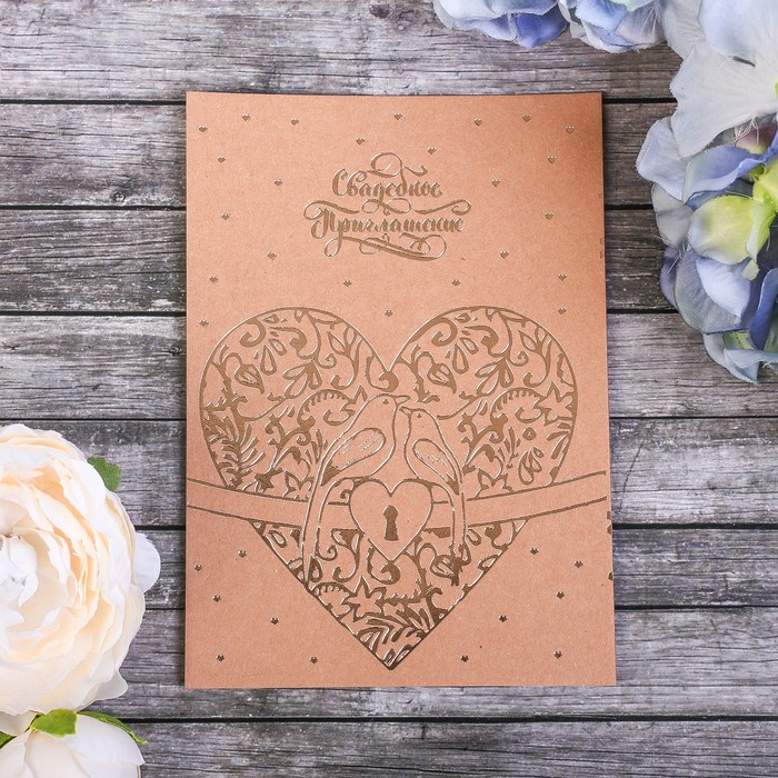 Приглашение на свадьбу крафт Замочек 10,5*10,5см