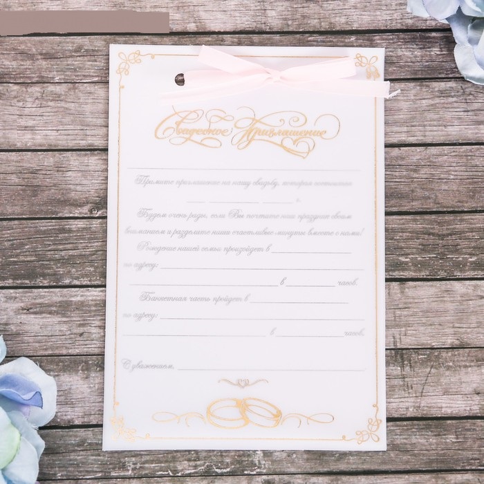 Приглашение свадебное, белое, розовая лента 11*16 см