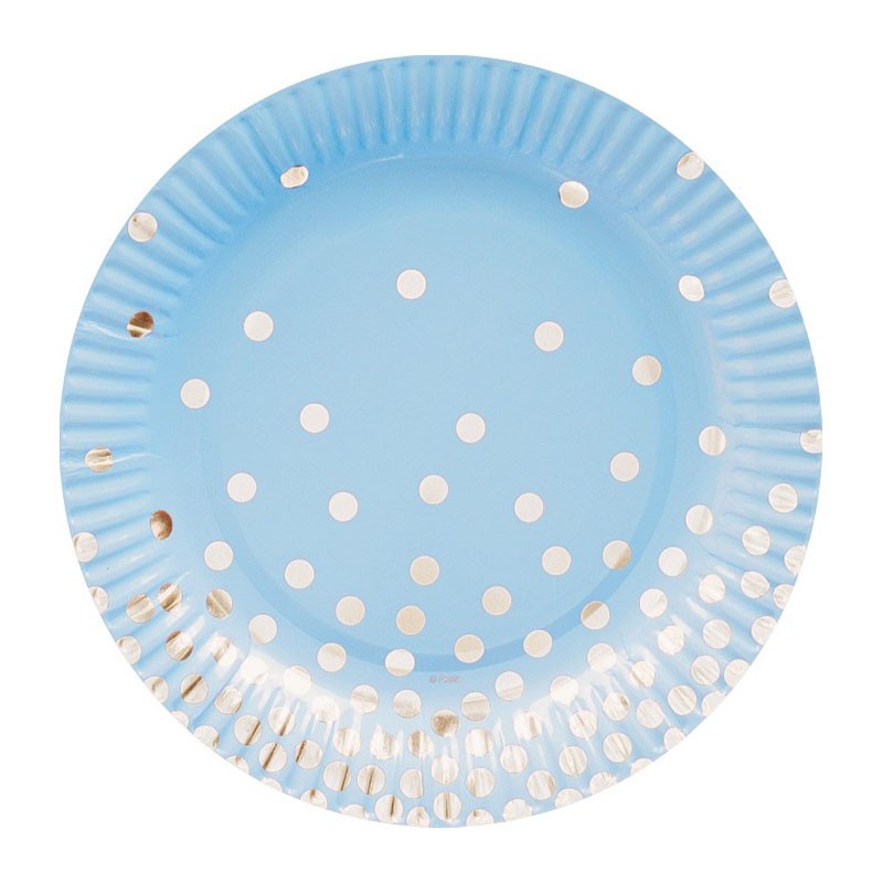 Тарелка Горошек серебряный на голубом 17см 6шт