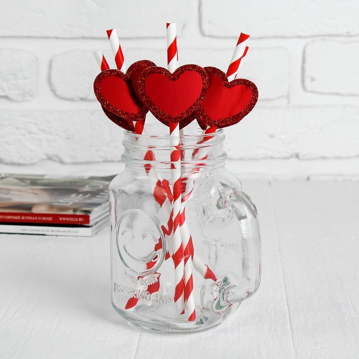 Трубочки для коктеля Спиралька с сердцем, красный 6шт
