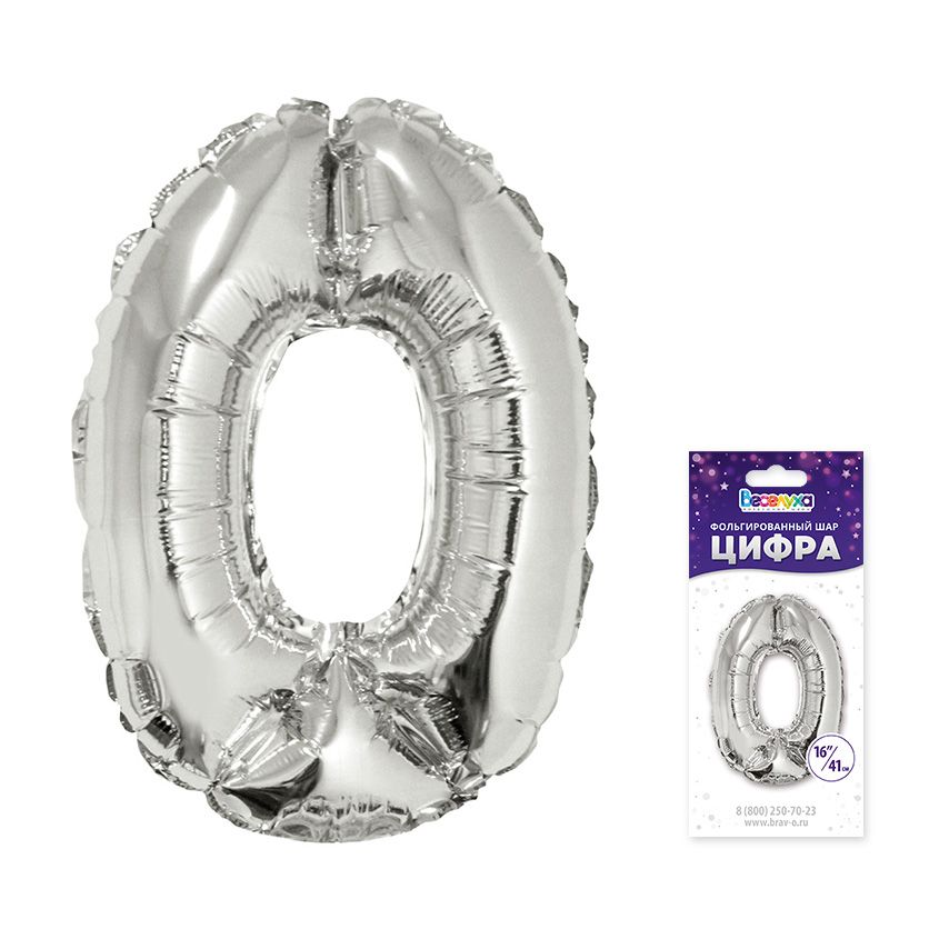 Шар Цифра 0 серебро 41 см (Уп)