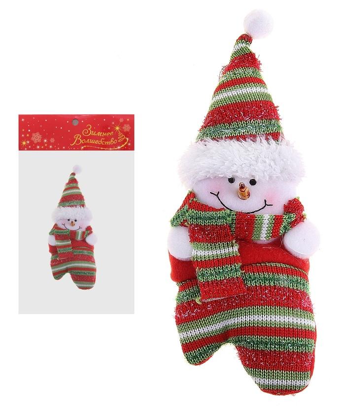 Подвеска мягкая Варежка 20 см снеговик