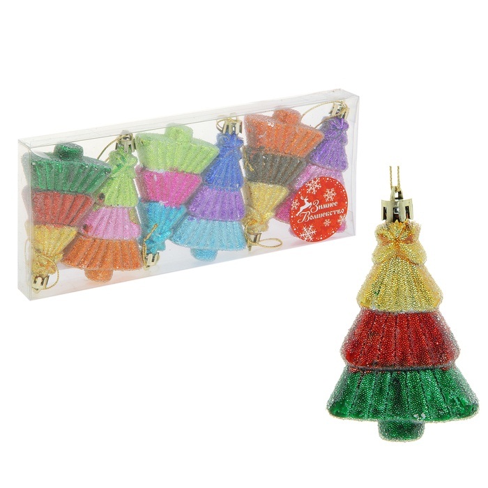 Украшение пластик Елочки радужные набор 6 шт