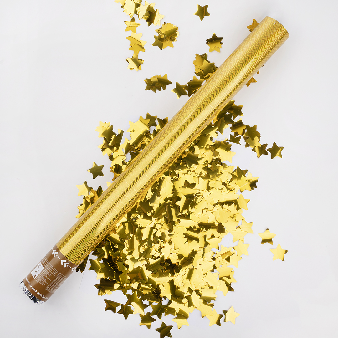 Пневмохлопушка Звезды Золото Голография 60 см
